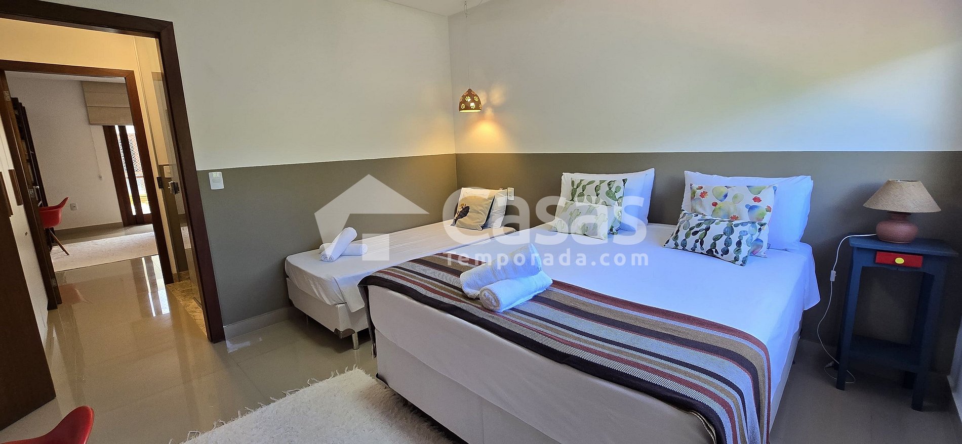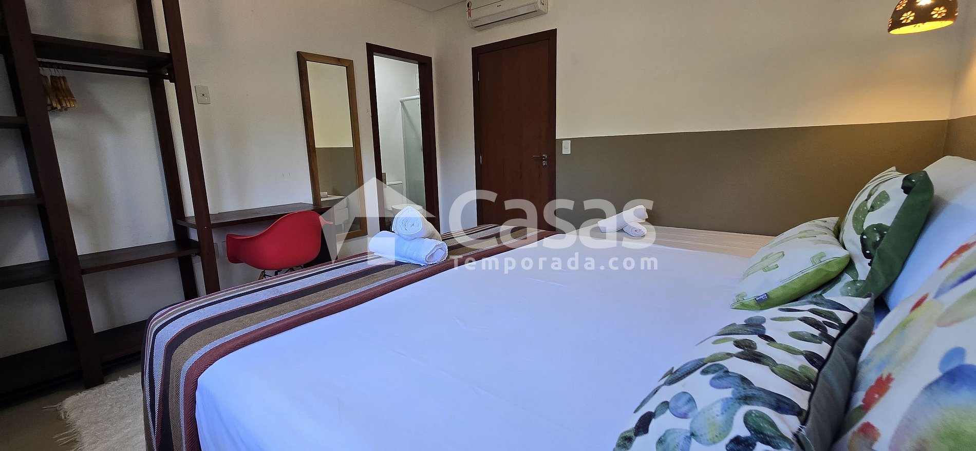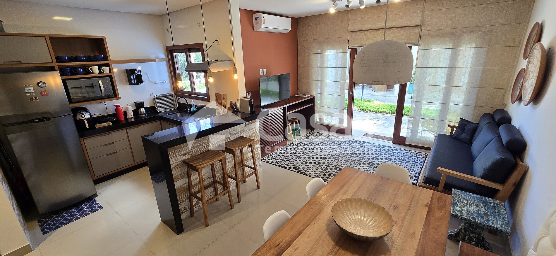 A casa possui uma excelente localização! Pertinho da praia, íamos andando. É toda climatizada, fica ao lado da piscina do condomínio, a cozinha é bem completa, conta com vários utensílios. Realmente valeu muito a pena! A casa é literalmente como nas fotos. Tivemos uma ótima experiência e queremos nos hospedar mais vezes!
