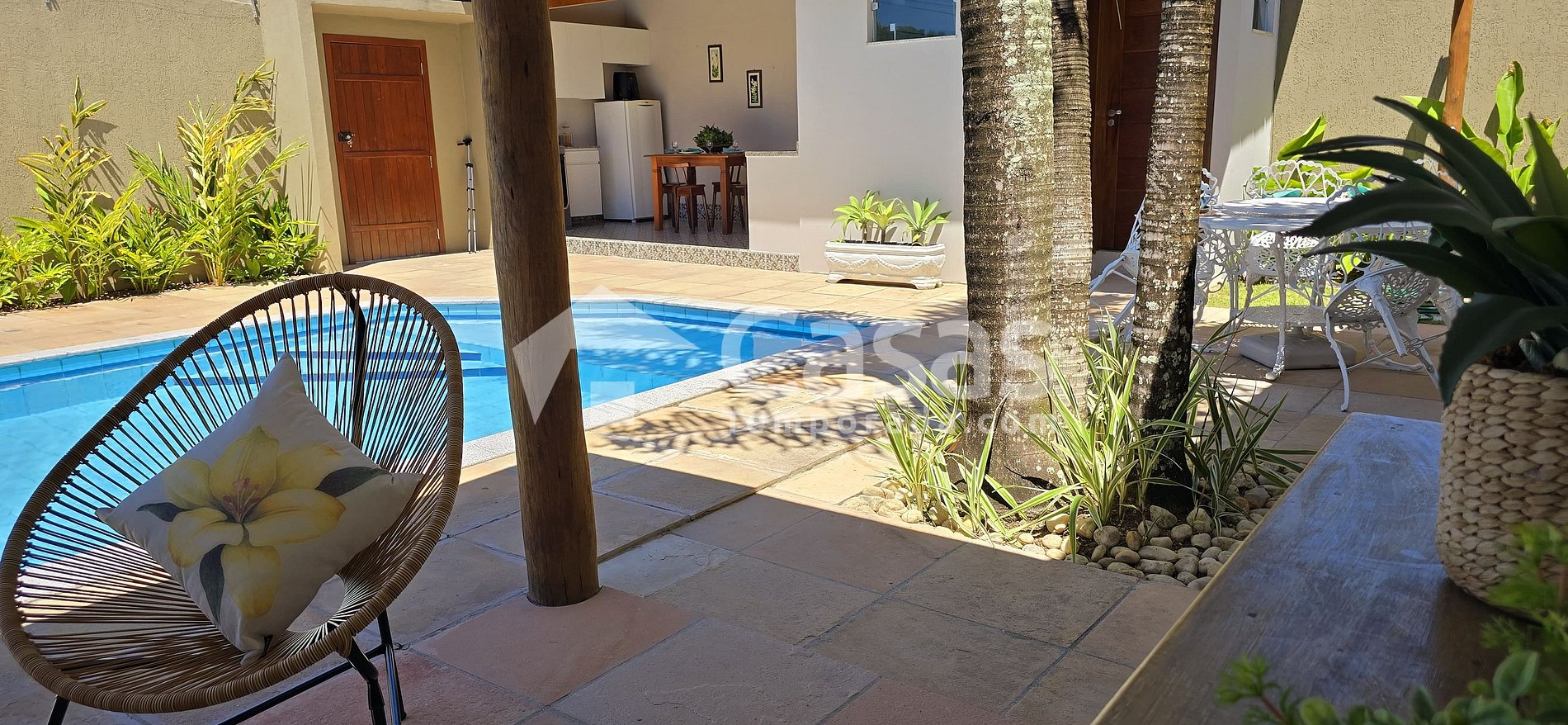 La integración entre los ambientes, las habitaciones con vista a la piscina y el área exterior acogedora hacen de esta propiedad un refugio cálido y muy especial. La ducha exterior y el baño junto a la piscina brindan mayor comodidad. Ubicada en la calle principal del barrio, cerca de la Playa de Taperapuan y sus famosas barracas, garantiza practicidad y diversión durante la estadía.