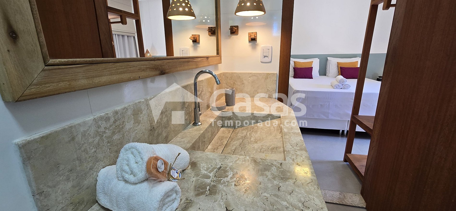 Hospedate a solo 400 metros de la Estrada da Balsa, en el Condominio Pedra da Lua, y disfrutá de toda la belleza y tranquilidad de Arraial d’Ajuda, muy cerca de las mejores playas de la región.