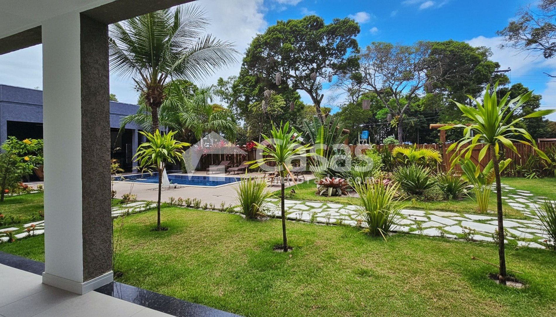 Jardim amplo e bem cuidado