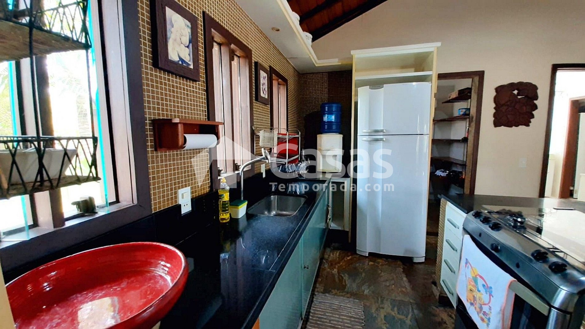 Um verdadeiro refúgio para quem busca relaxamento e diversão em Taperapuan. Cozinha Equipada completa dispõe de fogão, forno, micro-ondas, geladeira, freezer e utensílios para preparar refeições para toda a família.