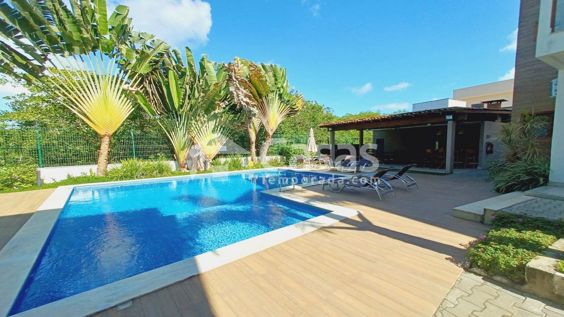 Piscina e churrasqueira à disposição.