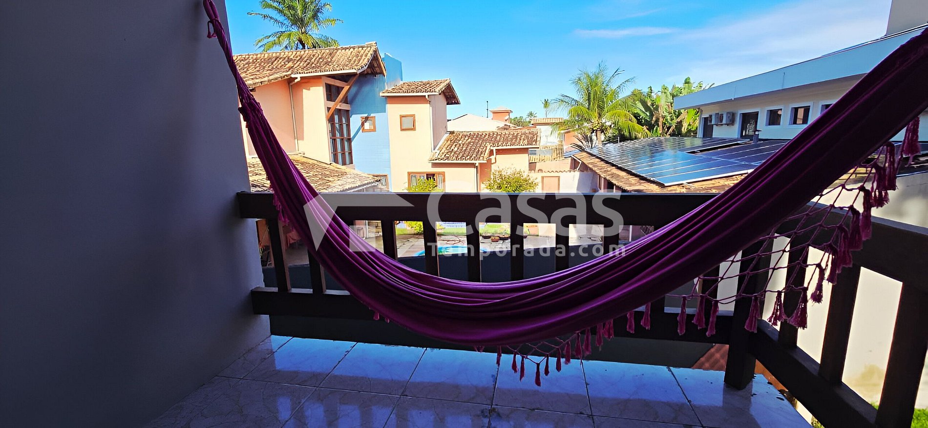 Varandas com redes e vista para jardim e para piscina