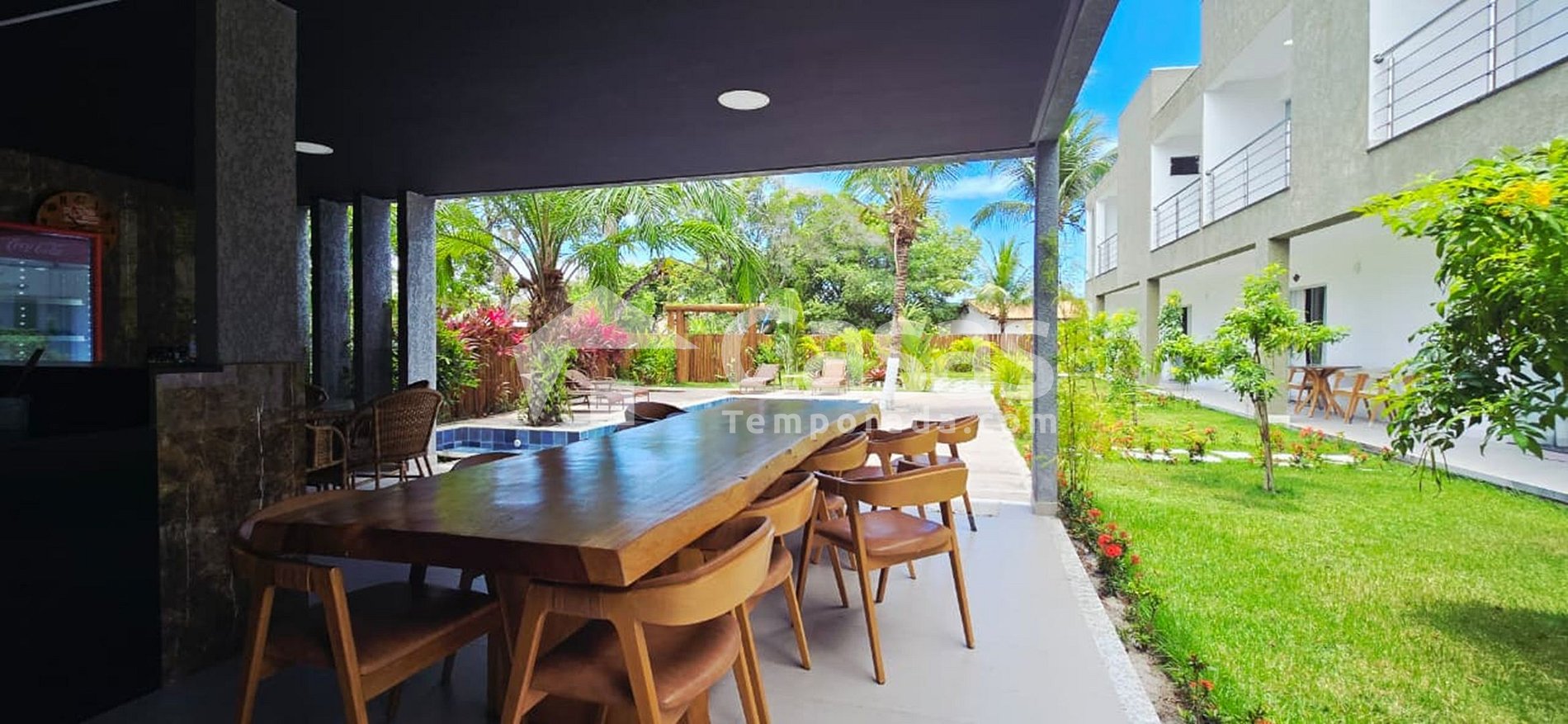Nossa pousada fica a 50 metros do mar, com apartamentos completos de frente para a piscina, café da manhã servido no jardim e localização imbatível em frente à Barraca Jinga. Ideal para famílias!